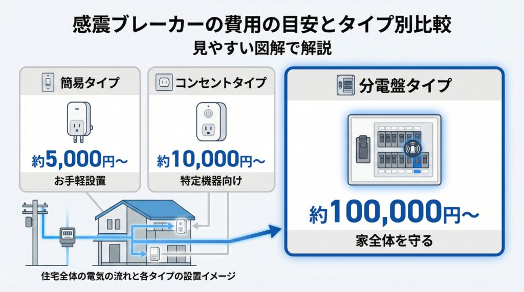 感震ブレーカーの費用は、種類や設置方法によって異なります。