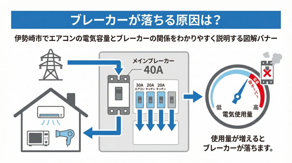 伊勢崎市でエアコンの電気容量は足りる?ブレーカーが落ちる原因と対策